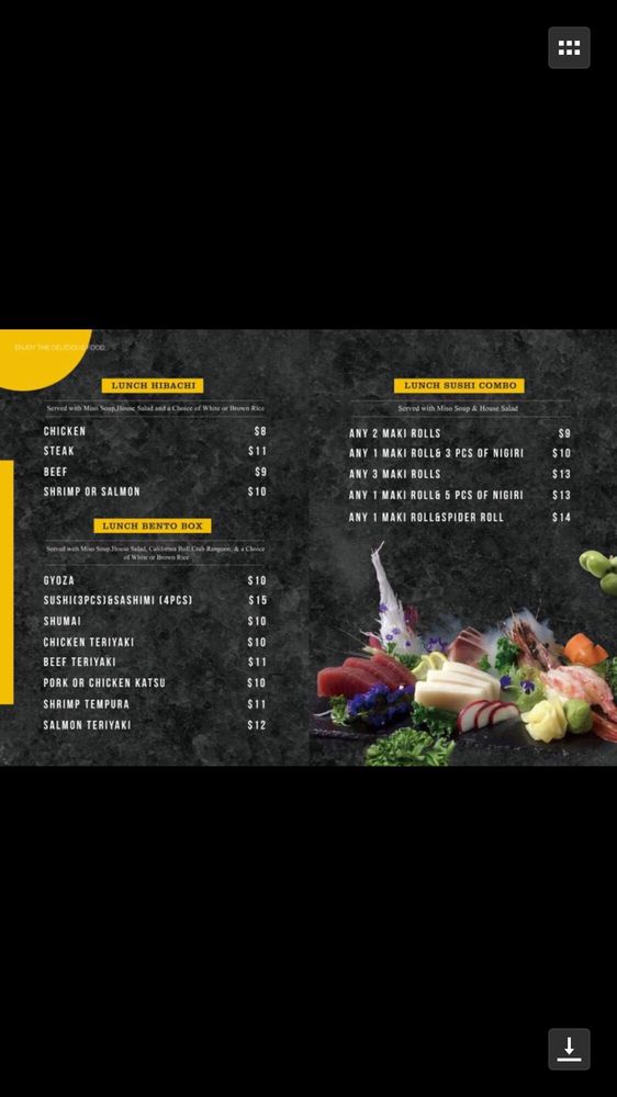 3 Piece Sushi and 4 Piece Sashimi Bento Box Lunch